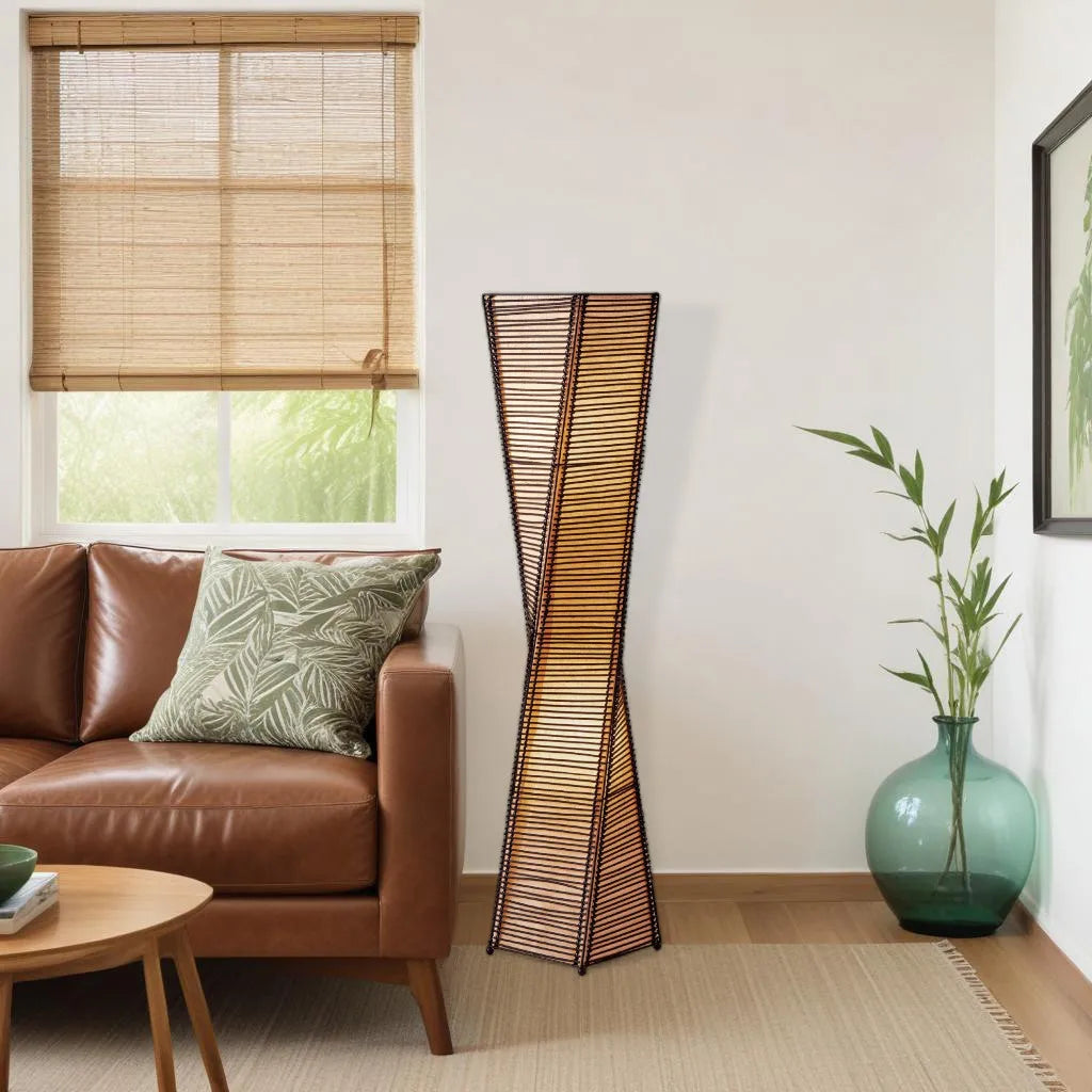 Brown & White Peacock Torchiere Lamp