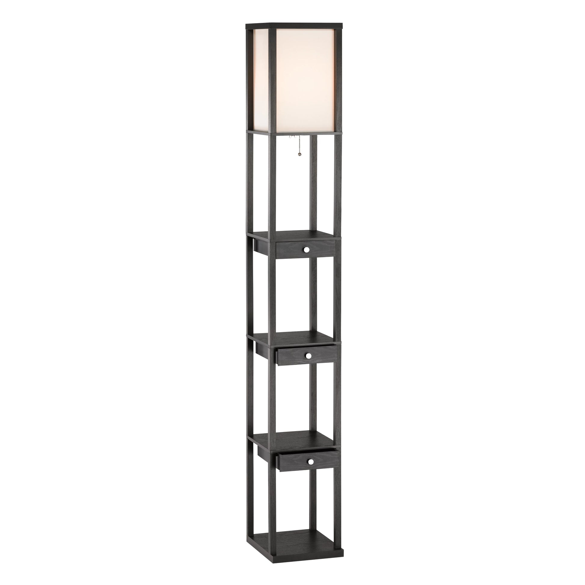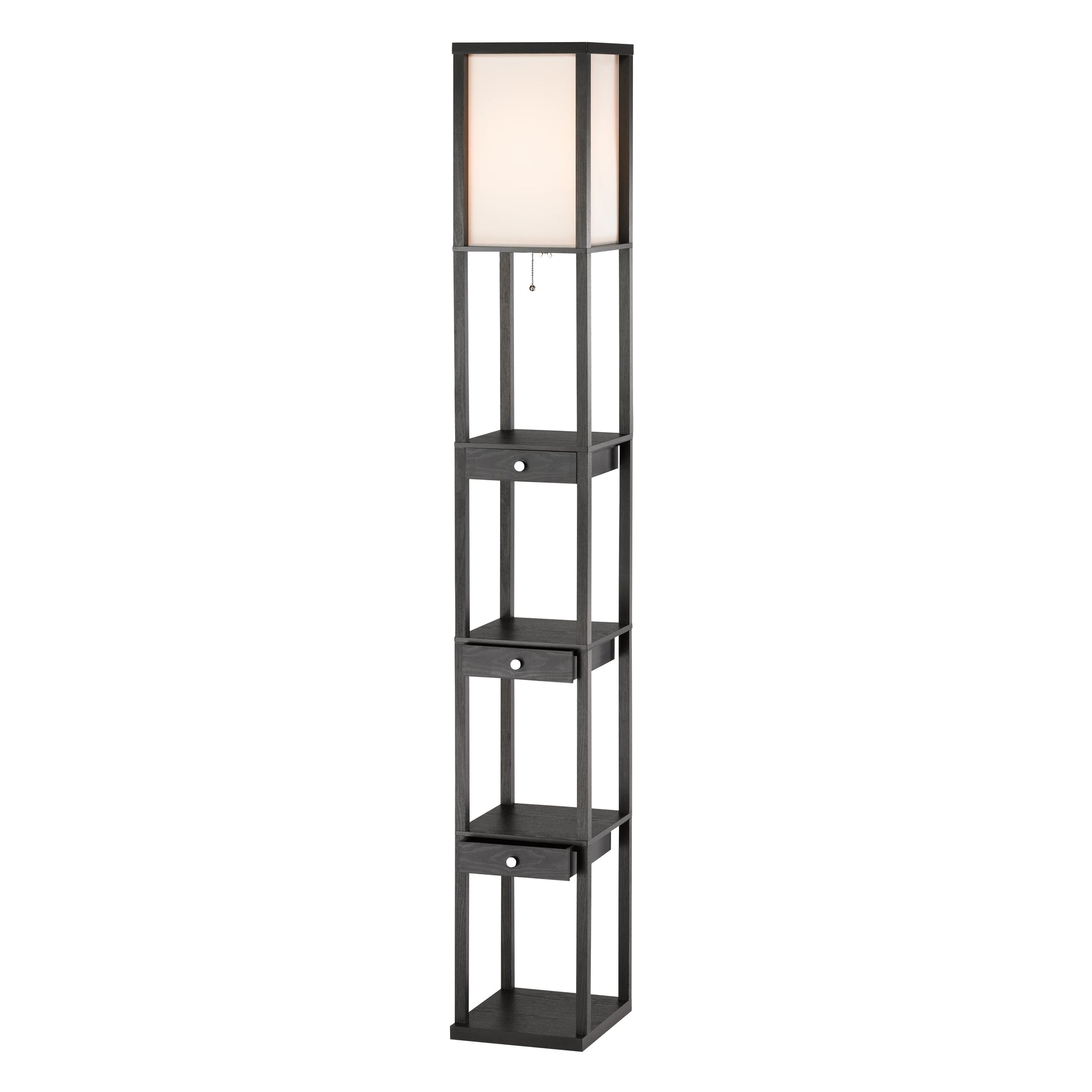 Industrial Black Floor Lamp with Fabric Shade